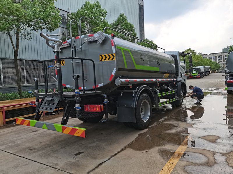 專用功能配置:罐體實際容積約為10立方米,公告有效參數8.1立方米、采用武鋼優質碳鋼板卷壓成型。配備專用灑水泵,自吸自排,前噴后灑、側噴、后工作平臺及灑水高壓炮。灑水泵自吸高度為6米左右,整車灑水寬度14米左右,后工作平臺水炮上下左右360旋轉可調成:直沖狀、大雨、中雨、小雨、霧狀,有效射程≥28米,整車帶接頭、水位計,自流閥。后工作平臺主管道有一個一寸的澆花接口,附送2根3米水管,1個爬梯,兩側及后保險杠。