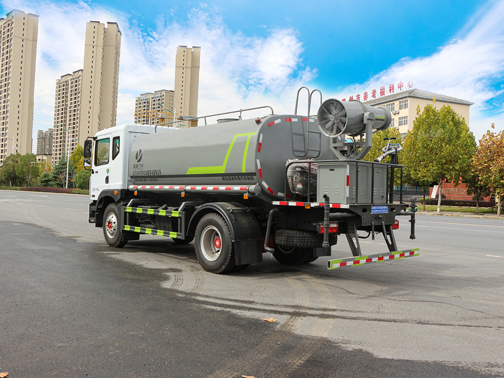 15方灑水車底盤配置: 發動機康明斯 230 馬力(六缸),法士特 8 檔變速箱,2315 駕 駛室,4.5T 前橋,10T 后橋,10.00 鋼絲胎,軸距 4500,250 大梁,斷 氣剎,空調,電動玻璃,中控鎖。