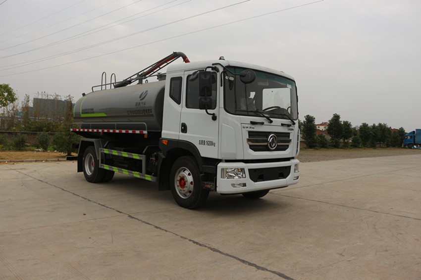 配置山東SK-12S水循環(huán)吸污泵,不銹鋼水箱,取力器、傳動軸、水氣分離器、多路換向閥、360°旋轉(zhuǎn)底座、真空壓力表、視糞管、后部自流口200mm。洗手箱,1根8米吸糞管