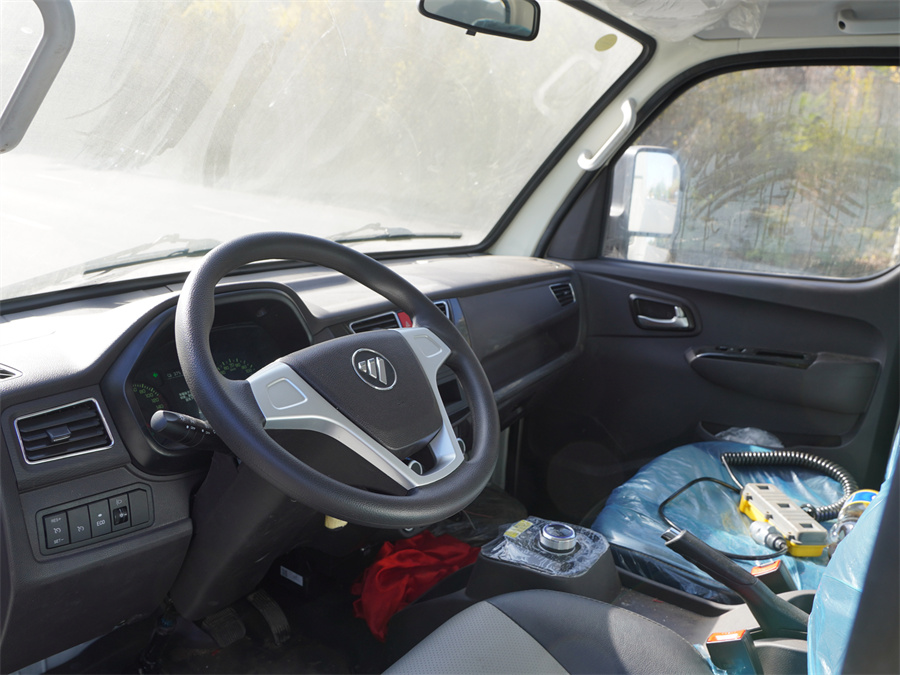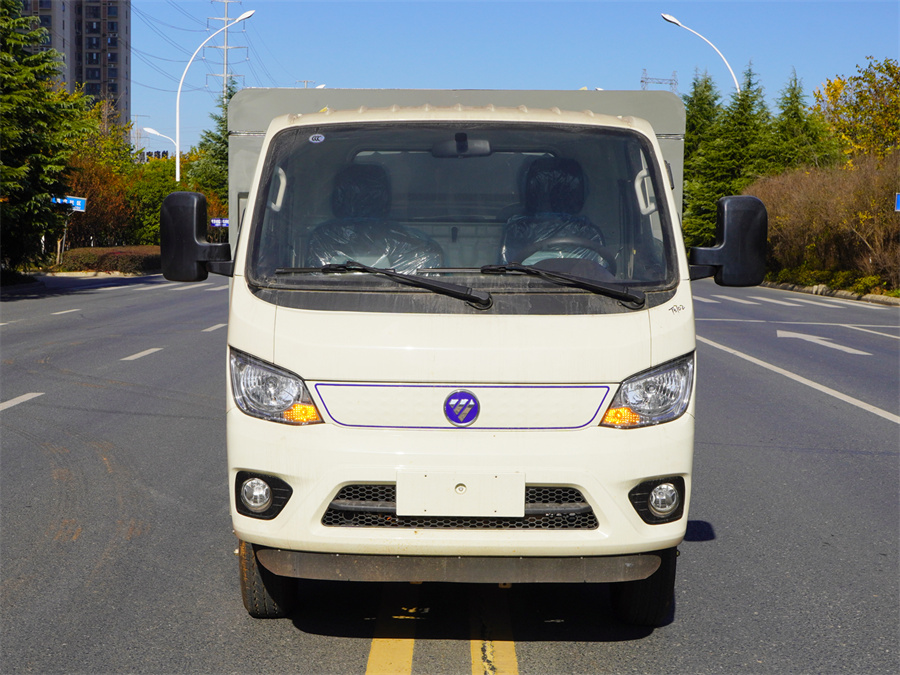 電動密閉式桶裝垃圾車該車主要用于收集桶裝垃圾的收集和運輸,專用裝置為廂體和液壓尾板;液壓尾板收起狀態的水平長度為180mm;尾板質量為350kg;側防護材料為:鋁合金+Q235碳鋼,連接方式為螺栓連接加焊接連接,后部防護材料為:Q235碳鋼,后防護采用焊接連接;后防護截面尺寸:直徑108mm(圓管),后部防護離地高度(mm):400;可升頂.蓄電池為磷酸鐵鋰蓄電池,成箱后的儲能裝置總成型號:L173TB3,儲能裝置總成生產企業:寧德時代新能源科技股份有限公司,儲能裝置單體型號:CB220,儲能裝置單體生產企業:寧德時代新能源科技股份有限公司; 驅動電機類型為永磁同步電機,型號為FTTBP075B,額定功率為45kW,峰值功率為90kW,生產企業為北汽福田汽車股份有限公司;ABS型號是YF9,生產企業是武漢元豐汽車電控系統有限公司,選裝ABS型號是CM4YL,生產企業是廣州瑞立科密汽車電子股份有限公司;該車型可選裝直接供電式ETC車載裝置;該車整備質量不包含備胎,滅火器和隨車工具;貨箱質量:905kg;貨箱材質為Q235鋼板,底板厚度為3mm,側板、頂板和前板厚度為2mm。
