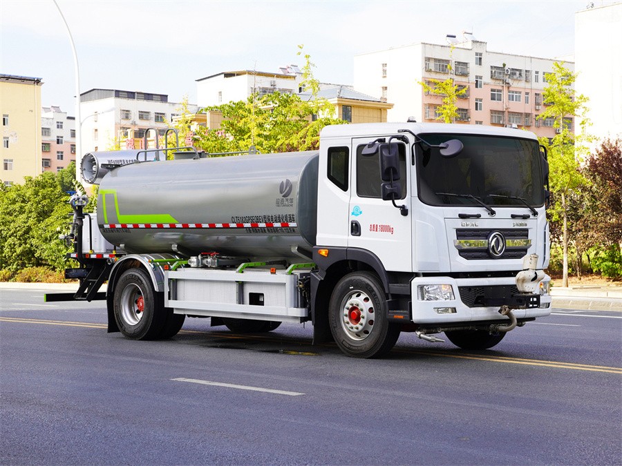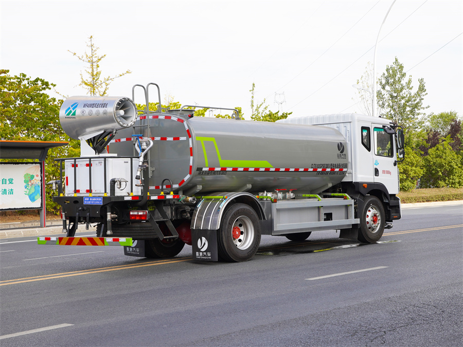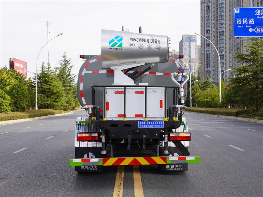 東風12噸電動灑水車該車主要用于城鄉園林綠化,路面噴灑;主要裝置為罐體及噴灑裝置;罐體總容量:10.6立方米;罐體有效容積10.1立方米;介質:丙酮水溶液,密度950千克/立方米,罐體外形尺寸(長×長軸×短軸)(mm):4600×2300×1450;側防護材料為鋁合金+Q235碳鋼,連接方式為螺栓連接;后防護材料為:Q235碳鋼,連接方式為:螺栓連接;后部防護截面尺寸(mm):120×50,后部防護離地高度(mm):490;儲能種類類型/總成生產廠家/單體生產廠家:磷酸鐵鋰蓄電池/寧德時代新能源科技股份有限公司/寧德時代新能源科技股份有限公司;電機額定功率:100kW;電機峰值功率:185kW;選裝電機額定功率:110kW;電機峰值功率:180kW;ABS系統生產廠家,型號:焦作博瑞克控制技術有限公司,J ABS;選裝前部電子水炮樣式,選裝前部不帶電子水炮,該狀態下車長為8300mm,7900mm;當前部安裝電子水炮時,車長為8800mm,8400mm,車輛前伸500mm;僅采用底盤4500mm軸距改裝;選裝后部不帶霧炮樣式,選裝前部鴨嘴沖裝置樣式.選裝箭頭燈裝置,選裝大小平臺裝置,選裝噴灑裝置,選裝后對沖裝置.