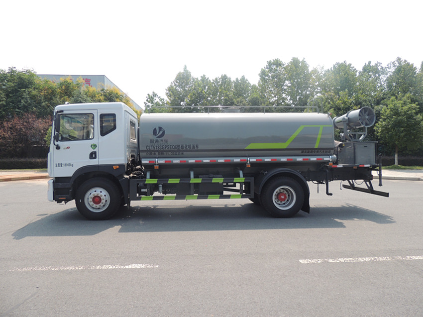 東風 D9- 12方抑塵車產品主要技術參數 序號 名稱 型號、規格 1 整車型號 CLT5160TDYEQ6 型多功能抑塵車 2 發動機型號 D4.0NS6B195 3 發動機馬力/功率 康明斯 195 馬力/143KW 4 發動機排量 4000ML 5 變速箱 法士特 8 檔(帶高低檔) 6 輪胎規格 275 真空胎 7 軸距 3950 8 總質量 16200KG 9 整備質量 6750KG 10 額定載質量 9255KG 11 整車尺寸(長×寬×高) 7.75*2.5*3.2 12 罐體容積 12 方 13 燃料種類 柴油 14 排放標準 國六 15 水泵型號 60/90 16 罐體材質 Q235 碳鋼