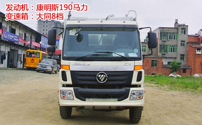 福田歐曼壓縮式垃圾車,ETX2200平頂駕駛室,康明斯190馬力,采用大同6檔取力器,10噸后橋,10.00R20輪胎,氣囊座椅、空調、遠程油門、帶有ABS,超級卡車管理系統,帶行車記錄儀,油耗監控,遠程救援。