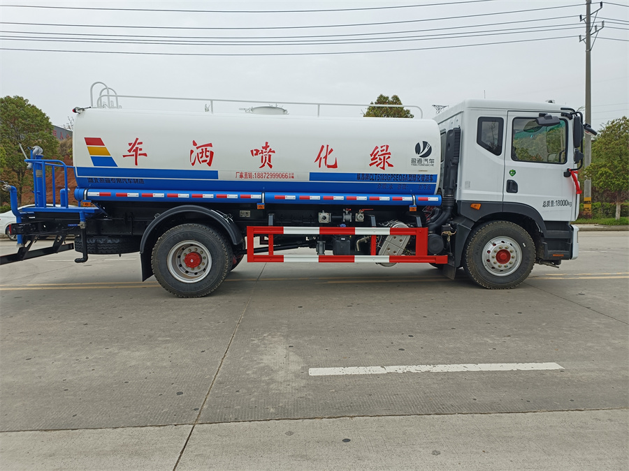 產(chǎn)品標(biāo)配前噴(鴨嘴)、后沖、后灑、側(cè)噴、后置式工作 平臺(tái),平臺(tái)上配置綠化水炮(可 360°旋轉(zhuǎn),既可以調(diào)成柱狀,也可 以調(diào)成霧狀,更可以調(diào)成直沖狀、大雨、中雨、小雨、毛毛雨),配 備優(yōu)質(zhì)大功率專用灑水泵(可自吸自排,可從河里或池塘抽水到罐體), 取力器,雜物過濾網(wǎng),消防接口,自流球閥系統(tǒng)、取力器、球閥、濾網(wǎng) 均為國家標(biāo)準(zhǔn)產(chǎn)品,主管道加粗,法蘭墊、法蘭盤加厚,大通徑球閥。 整體具備性能優(yōu)良安全可靠,可以加裝電子水炮,氣動(dòng)球閥,霧炮