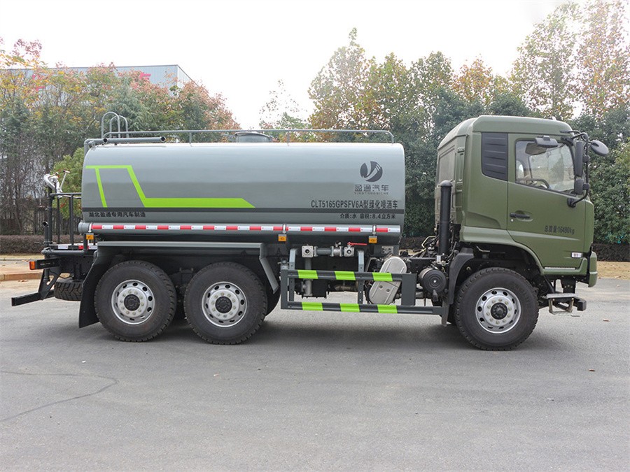 灑水車(chē)產(chǎn)品標(biāo)配前噴(鴨嘴)、后沖、后灑、側(cè)噴、后置式工作 平臺(tái),平臺(tái)上配置綠化水炮(可 360°旋轉(zhuǎn),既可以調(diào)成柱狀,也可 以調(diào)成霧狀,更可以調(diào)成直沖狀、大雨、中雨、小雨、毛毛雨),配 備優(yōu)質(zhì)大功率專(zhuān)用灑水泵(可自吸自排,可從河里或池塘抽水到罐體), 取力器,雜物過(guò)濾網(wǎng),消防接口,自流球閥系統(tǒng)、取力器、球閥、濾網(wǎng) 均為國(guó)家標(biāo)準(zhǔn)產(chǎn)品,主管道加粗,法蘭墊、法蘭盤(pán)加厚,大通徑球閥。 整體具備性能優(yōu)良安全可靠、效率高、流量大、維修方便等特點(diǎn)