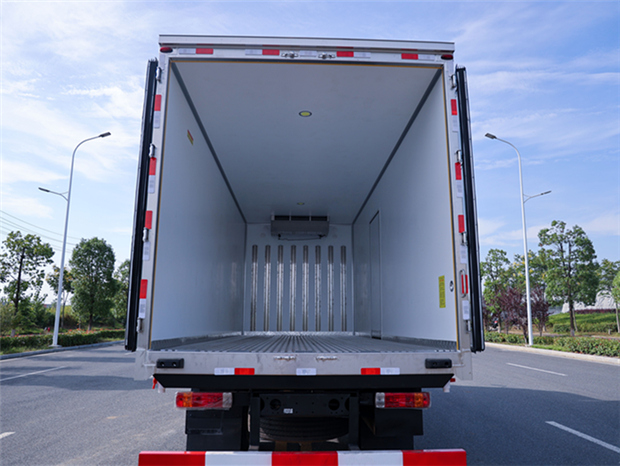 解放J6L 6米8冷藏車廂體配置為:斷橋隔溫工藝,整體結(jié)構(gòu)框架,內(nèi)外面料為3mm新款啞光玻璃鋼夾保溫層真空復(fù)合而成,廂體厚度為8cm,最新款鋁合金包邊型材,型材局部厚度為4mm(鋼制鉚釘加固),廂體內(nèi)部采用2個(gè)LED照明燈及廂體示寬燈,后門框不銹鋼材質(zhì),門框密封條為三元乙丙橡膠材質(zhì),加厚型不銹鋼合頁(yè)及鎖件;副梁為Q700車用大梁鋼,15mm厚大梁墊皮,加裝防撞膠塊,不銹鋼門鎖件,配后雙開(kāi)門,副駕駛一側(cè)居中靠前開(kāi)單側(cè)門一個(gè),帶2個(gè)排水孔。